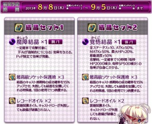 その他にも、自身の攻撃力や攻撃速度を上昇させる結晶や、SP消費量を減少させる結晶など魅力溢れるさまざまな結晶が当たるチャンスとなっておりますので、どうぞお見逃しなく!
