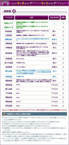 装備が元々持っている能力をさらに伸ばしてもよし、不足しているところを補ってもよし!この機会に素敵な結晶をGET して、自分だけの装備を作り上げましょうアイテムモールに新作「強欲蔵」が登場!