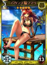 2013年8月14日(水)17:00から、「バカンス猫ソマリ」「ビーチのククル」のカードを入手できるバカンスカードGETキャンペーンを開催いたします。バカンス中の二人は戦闘にはあまり乗り気ではありませんが、癒しとくつろぎで味方をサポートしてくれます。また、バカンスパックの購入に対して1日1回ポイントバックを行うキャンペーンも同時に開催!