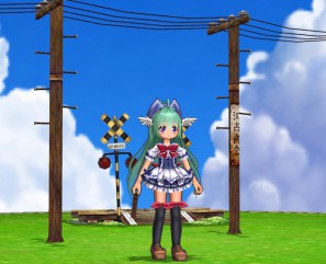 「フリルセーラー(夏服・青)」や「思い出のスクールウェア(夏服・青)」「思い出のスクールパンツ(黒)」「思い出のローファーセット(黒)」「フライフィッシュの鞄(右・茶)」「フライフィッシュの帽子(白)」で決めれば、気分はまさに学校帰りの夏の放課後!
