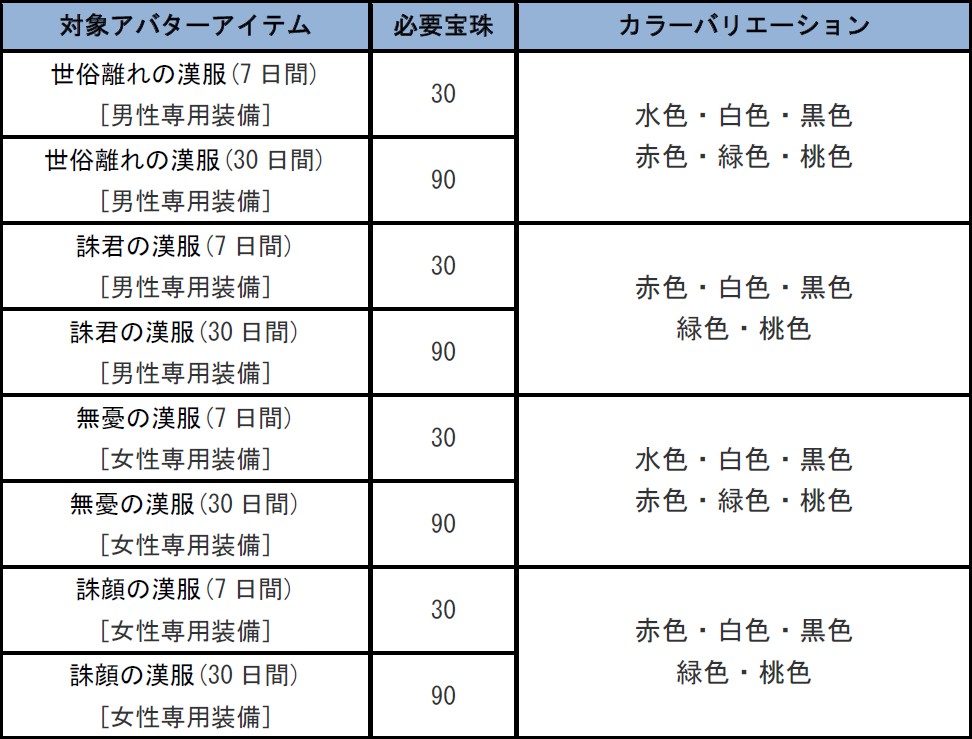 キャンペーン期間中、以下の対象アバターアイテムの販売価格が変更されます。