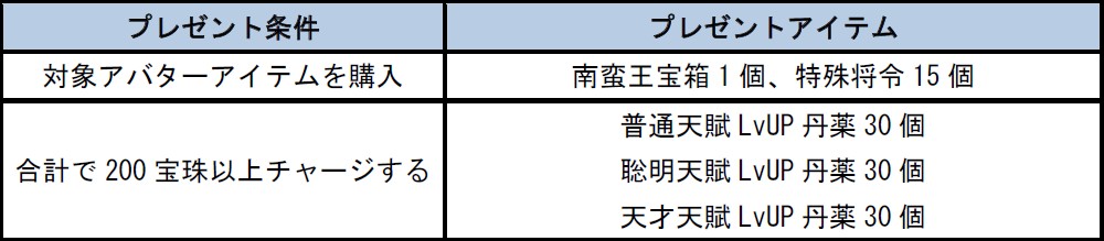 さらにキャンペーン期間中、以下の条件を達成した方には「南蛮王宝箱」や「特殊将令」などゲーム内での入手方法が限られた、豪華アイテムをプレゼント!