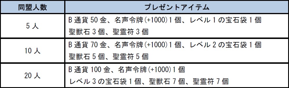 キャンペーン期間中、所属している同盟の人数に応じて素敵なアイテムをプレゼント!まだ同盟に加入していない方、同盟メンバーを募集中の方、チャンスですよ!