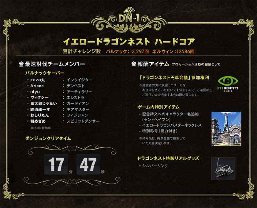2013年6月19日(水)~7月24日(水)に開催された「第3回DN-1グランプリ」!討伐された回数は400回を超え、大変多くのお客様に参加していただきました。その中で栄光を手にした最速討伐メンバーを発表いたします。
