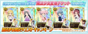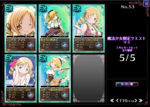 カウントダウンページの公開と連動しまして、2013年8月29日(木)より「魔法少女別クエスト」を実施いたします。本日公開しましたカウントダウンページと連動した、「魔法少女別クエスト」をご用意いたしました。「魔法少女別クエスト」からは、過去登場した一部のEXカードをキャラ別に入手可能です。