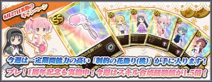 さらに、期間中に出現するEXカードを魔法少女別クエストで入手し、期間限定のシリーズシートである「魔法少女限定クエストまどか」、「魔法少女限定クエストさやか」、「魔法少女限定クエストほむら」、「魔法少女限定クエスト杏子」、「魔法少女限定クエストマミ」をコンプリートした数に応じて豪華報酬をプレゼントいたします。「魔法少女別クエスト」は、8月29日(木)からの開始となります。ぜひ、この機会をお楽しみください。