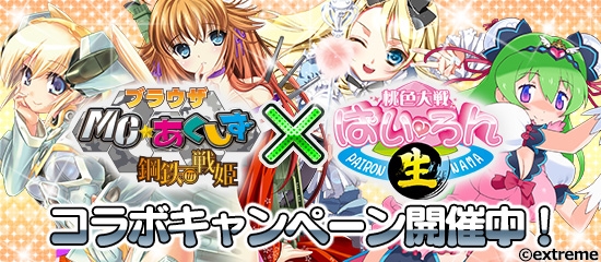 マーベラスAQLは、「MC☆あくしず 鋼鉄の戦姫」において、エクストリームの「桃色大戦ぱいろん・生」とのコラボレーションを、本日8月28日より開始する。