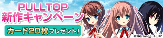 キャンペーン期間中に新規登録いただいた方全員に「ココロ@ファンクション!」など【PULLTOP】作品のキャラカードが引けるクローバーチケットを20枚プレゼントいたします。
