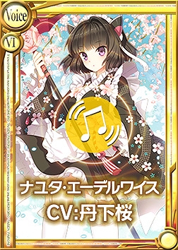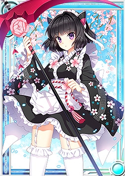 ナユタ・エーデルワイスを担当してくれたイラストレーターはぱいろん初登場Nardack先生です!黒い髪と桜の装飾が美しい大鎌が特徴的なメイドさんを描いてくださいました。白と黒の可愛いメイド服と裾から見え隠れする煽情的なガーターベルトが魅力的です!