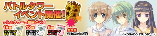 イベント期間中、バトルタワーの勝利数に応じて「ワイルドカード」をプレゼントいたします。参加者全員にルビーチケット1枚をプレゼント!