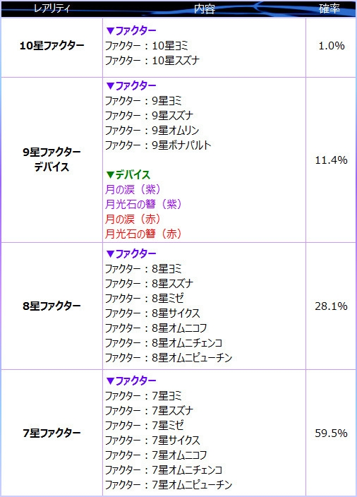 「夜天箱」から入手可能なストライカー、アイテム一覧