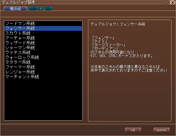 「デュアルジョブ」は全12種の職業系統の中から1系統を選び「JOBLV」を上げることで、選んだ職業系統の様々なスキルを習得することが可能!また「デュアルジョブ」を習得したキャラクターは、習得した職業系統の「三次職クロニクルジョブ」が装備可能な装備品を身に着けることができるようになるので、三次職クロニクルジョブのプレイスタイルがさらに広がります!