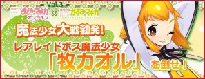 2013年10月1日(火)メンテナンス後より実施されたレイドイベント「ワルプルギスの夜 第11夜」において、「牧カオル」がレアレイドボスとして登場します。ゲーム内では初となる足技を使用するキャラクターです。さらに、ある条件を満たすと「牧カオル」が仲間になりますので、ぜひ挑戦してみてください!