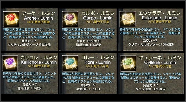 神話が由来の名前を持つ、最高性能のコスチュームルミンが登場します。6種類のルミンは、それぞれ攻撃か防御に特化しています。装備させたいキャラクターの特長や戦闘スタイルの好みによって、欲しいルミンが変わってくると思われます。6種類の新ルミンは、本日10月2日(水)実装の「ヨルムンガンドの巣」「カスティア遺跡」のハードモードのボスドロップで入手できます。