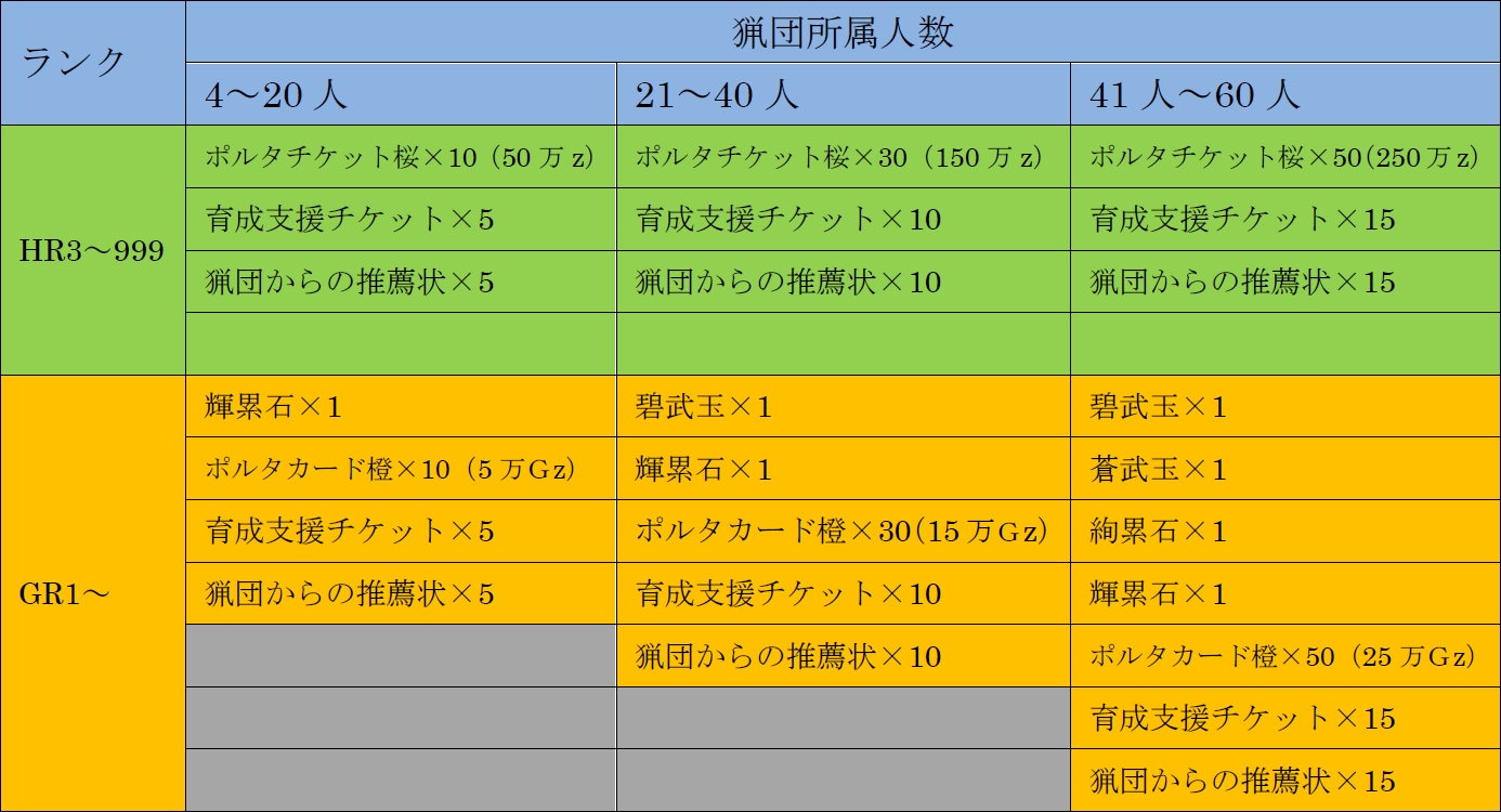 ※「育成支援チケット」で受注できるクエストは「猟団ランク4」から受注可能です。