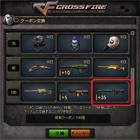 クーポン交換アイテム:[更新前]Whinchester-S→[更新後]MG3-Camo