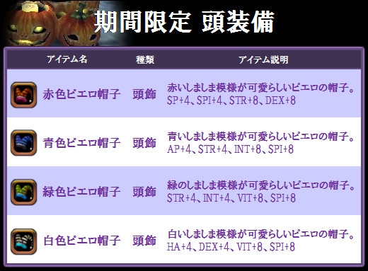「XAOCモール」に、貴方のキャラクターをハロウィン色に染めるスペシャルな福袋「ハロウィンCUBE」が登場!「ハロウィンCUBE」からはゴシック&ホラー&キュートなアバターセットやマジカルな頭装備「魔女帽子」など、ハロウィンにピッタリのアイテムが当たるチャンスです。また、頭装備「ピエロ帽子」も期間限定で販売し、4色それぞれ異なる能力を持っているので要チェックですよ。