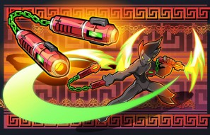 先端からビームの刃を放出する双節棍。刃の形状が変化し三又の槍として発射することも可能だ!アンプドおみくじ!にて登場。先端にビームの鎌を作りヌンチャクとして振り回すことで連撃を繰り出すことが可能!槍に変形させ中距離の相手に突き刺し間合いを詰める特殊技も備わっているぞ!