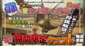 カプコンは、「モンスターハンター フロンティアG」において、デイリークエスト受注回数が3回になる「スペシャルデイリーウィーク」などを、本日11月6日より開催する。