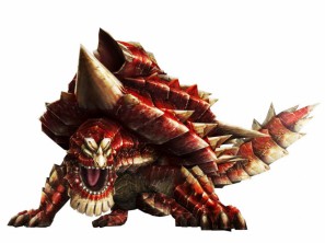 樹海に眠る棘竜。普段は穏やかだが一度怒ると全身が紅潮し、 一転して攻戦的になるという二面性をもつモンスター。 強固な甲殻で身を包み、毒を含んだ全身の棘は身震いするだけで近づく者に深い傷を負わせる鋭さをもつ。