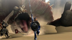 大地を揺るがす圧倒的な巨躯。地面に巨体をめりこませながら高速突進!口を大きく広げ、ハンターに食らいつく!ひとたび突進をくりだせば、地面は隆起し大きな波となり、ハンターを丸ごと呑みこまんとする。巨体から繰り出されるダイナミックな攻撃に惑わされることなく、 確実に攻撃の一手を加えよう。全方位への強烈なブレスは、あらゆるものを粉砕するほどの威力をもつ。