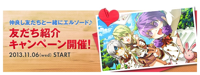 NHN PlayArtは、「エルソード」において、「男子キャラクター育成イベント」と「友達紹介キャンペーン」を、11月6日より開始した。