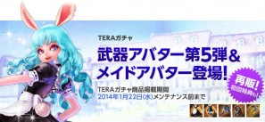 NHN PlayArtは、「TERA」において、エリーン専用のメイドアバターや各クラス別の武器アバター第5弾、ポポリメダルなどが当たるTERAガチャを、本日11月20日より再販売する。