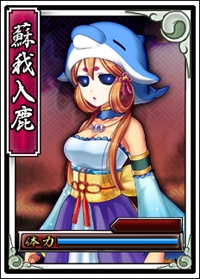 稀代くじの左「飛鳥くじ」より得ることができます。蘇我入鹿はレア設定されている姫武将より5~10倍の確率で出やすくなっております。