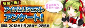 アバター・乗り物・雑貨・回復アイテムなんでもござれ。1人につき5種類までリクエスト可能です。多数の応募をお待ちしています!