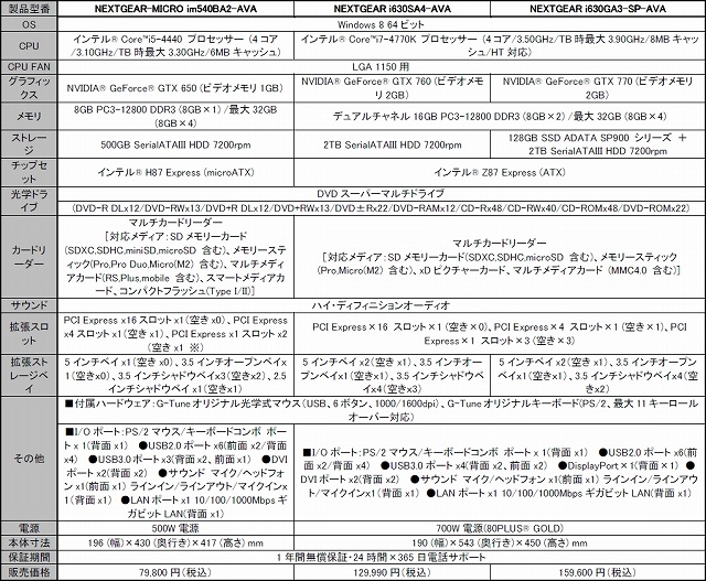 「AVA」を体感できる最初のエントリーモデルとして、最新のCPUとミドルスペックのグラフィックスを搭載しつつも7万円台という低価格を実現した、「NEXTGEAR-MICROシリーズ」より、インテル Core i5-4440プロセッサー、8GBメモリ、500GBハードディスク(7200rpm)、DVDスーパーマルチドライブ、NVIDIA GeForceGTX650、Windows 8をプリインストールした「NEXTGEAR-MICRO im540BA2-AVA」を7万9,800円でリリースいたします。