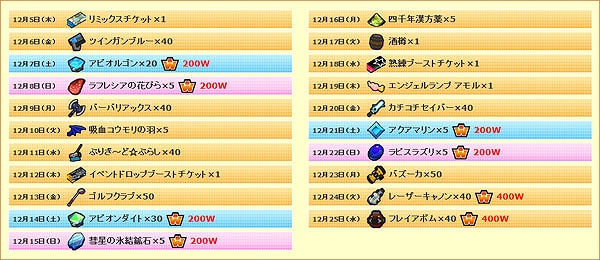 12月5日(木)のメンテナンス終了後から豪華なアイテムが毎日貰える「クリスマスカウントダウンログインキャンペーン」を実施いたします。