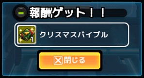 イベント期間中のみGAT スタジアムのトーナメントモードとオートマッチング、及びメガフォース本部のガーディアンミッションをプレイした際、戦闘終了後に一定の確率で「クリスマスバイブル」が入手できます。