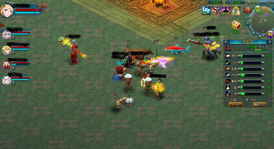 「宮廷の宴」内では必要な材料が記載されているので、必要な材料の敵を倒し評点が高いほど報酬でもらえる経験値が多くなります。