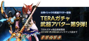 NHN PlayArtは、「TERA」において、本日12月18日より「女神イシャラ武器アバター」やポポリメダルなどが当たる新しいTERAガチャをオープンした。
