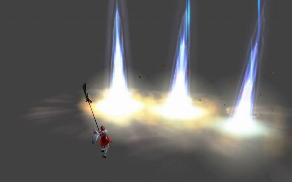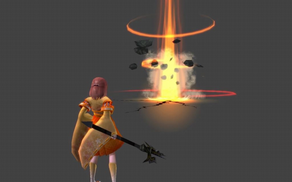 武器に集中させた超高熱エネルギーを前方に叩きつけ、3 発の大爆発を引き起こす。