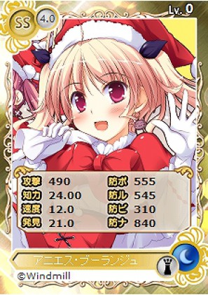 ゲーム内ショップの「特別召喚くじクリスマス」よりご購入いただけます。 中でも「アニエス・ブーランジュ(SS)」は、コスト 4、レジェンドスキル「純真の紋章」を保持!習得特権は「疾駆の才能」、移動速度もフォローされてます。最強の引率カードと言っても、申し分のないステータスとなっています。