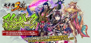 2013年12月26日(木)定期メンテナンス終了後より、2013年に実施された季節限定のイベントクエストを全て再配信いたします。 イベント数は全部で10クエスト、「ほしい武将が獲得できなかった!」「あの技だけ獲得できなかった!」と思っていた方は、 今年最後のチャンスを見逃さずに参加しましょう!