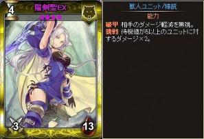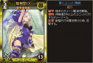 2013年9月に開催したカード人気投票で1位に輝いた「猫剣聖」の描き下ろしイラストカード「猫剣聖EX」がついに登場!「猫剣聖EX」は相手のダメージ軽減を無視するおなじみの能力「破甲」と、待機値が5以上のユニットに対するダメージを2倍にする「挑戦」の能力を持っています。