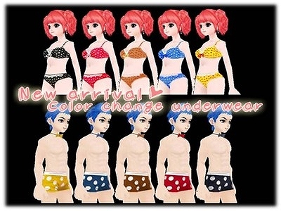 水玉模様のとってもセクシーでキュートな下着が追加されました。今回は初めての「染色可能」下着アイテムとなっております。早速ルディで「セクシードットリボン」をチェックし、気分に合わせてお好きな色に染色して、オシャレをもっと楽しみましょう。