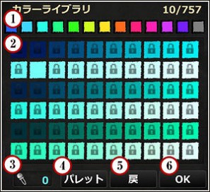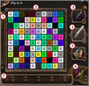 衣装や装備などのカラーを変更できるシステムが「カラーパレットシステム」です。「パレット」にて色を開放すると、「カラーライブラリー」のラインナップが増え、衣装や装備に反映させることができます。センスを活かして装備に色付けし、他とは違うオリジナルカラーのアイテムを装備することが可能です。例えば、美しい水色の装備を、紫色の鮮やかで深みのあるカラーへと変化させることができます。
