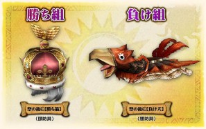 負けてしまっても負け組専用の褒賞防具が入手できるほか、期間中に「魂」を獲得してさえいれば各種アイテムと引き換えることのできる「祭ポイント」が入手可能ですので、まずはお祭りに参加して、楽しんでみましょう!