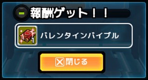- 上記に記載いたしましたイベント期間を過ぎても リリオに対して「バレンタインバイブル」をプレゼントする事ができます。 ただし、イベント終了後は上記に記載した場所にて 「バレンタインバイブル」は入手する事はできませんのでご注意ください。