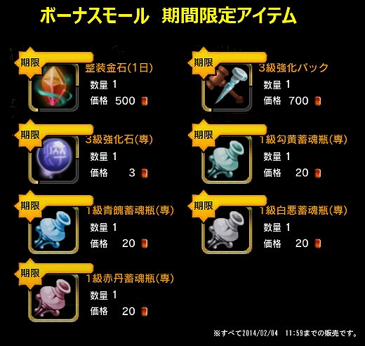 2014年1月28日(火)定期メンテナンス後から2014年2月4日(火)11時59分まで