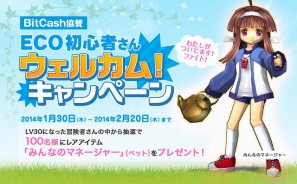 2014年がスタートし、まだまだ寒い日が続きますが、これからECOの世界へ羽ばたく冒険者の皆様、ECOをお楽しみいただいているすべての方を応援する、寒さを吹き飛ばす超お得なBitCash協賛の2大キャンペーンを開催いたします!