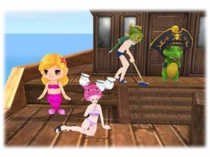<釣り用品分店>亀2から移動出来る海賊船にいる、<人魚>シレーナから、「 グリーンデッキブラシ 」を買って、海賊船を綺麗にしましょう。