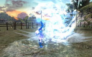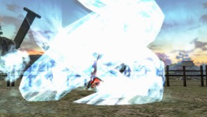 地面に突き立てた槍から巨大な渦潮を発生。 前方に貫通する巨大な水の塊を放つ