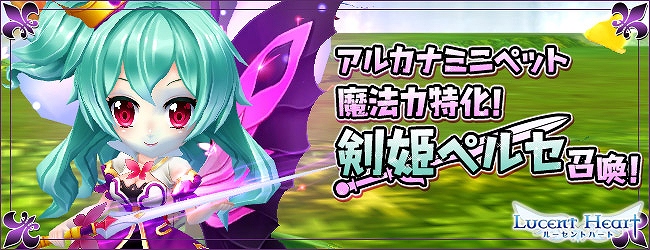 「ルーセントハート」では、本日2月7日にアルカナミニペット「剣契-剣姫ペルセ」が登場し、これを記念したキャンペーン「「剣姫-ペルセ」スペシャル付キャンペーン!」を開始いたしました。「剣契-剣姫ペルセ」は、魔法職に有利なスキルを持っているミニペットとなります。