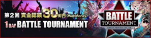 昨年12月に実施し大好評を博した「1DAY BATTLE TOURNAMENT」の賞金付き大会第2回を、2014年3月1日(土)に開催します。今回の賞金総額は30万円(WebMoney)で、そのほか多数の入賞賞品をご用意しております。現在、公式サイトで参加チームを募集中ですので、ぜひ仲間と共にご参加ください。