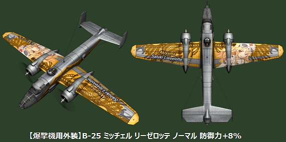 美少女戦士パトリオットZ「秋山さつきリーゼロッテ」の爆撃機用特殊外装を実装いたしました!装備時には「防御力+8%」の効果を得ることができます!ぜひリーゼロッテと一緒に大空を飛びまわってください!