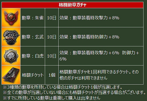 格闘勲章ガチャ実装!」